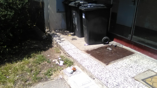 Nepořádek na místě u popelnic.