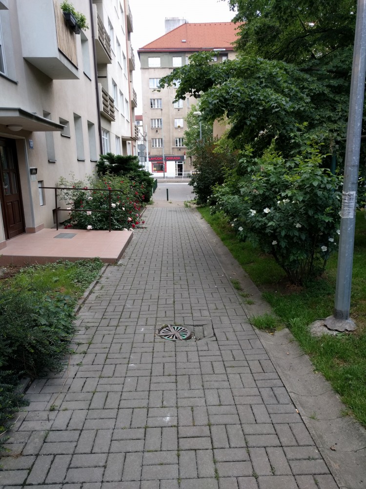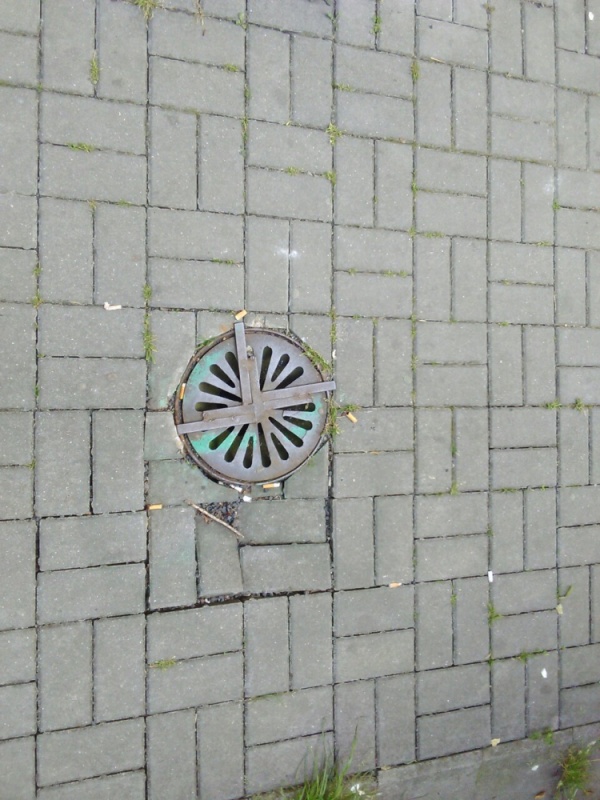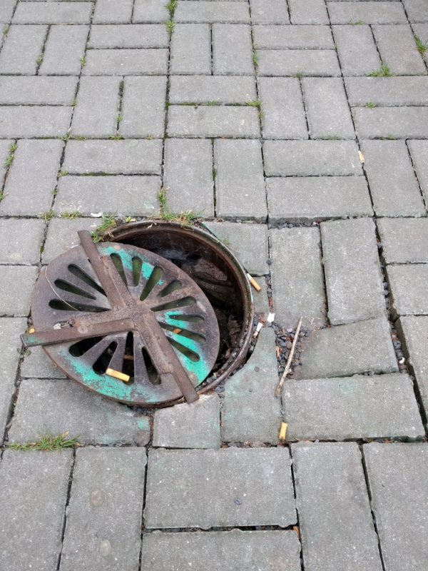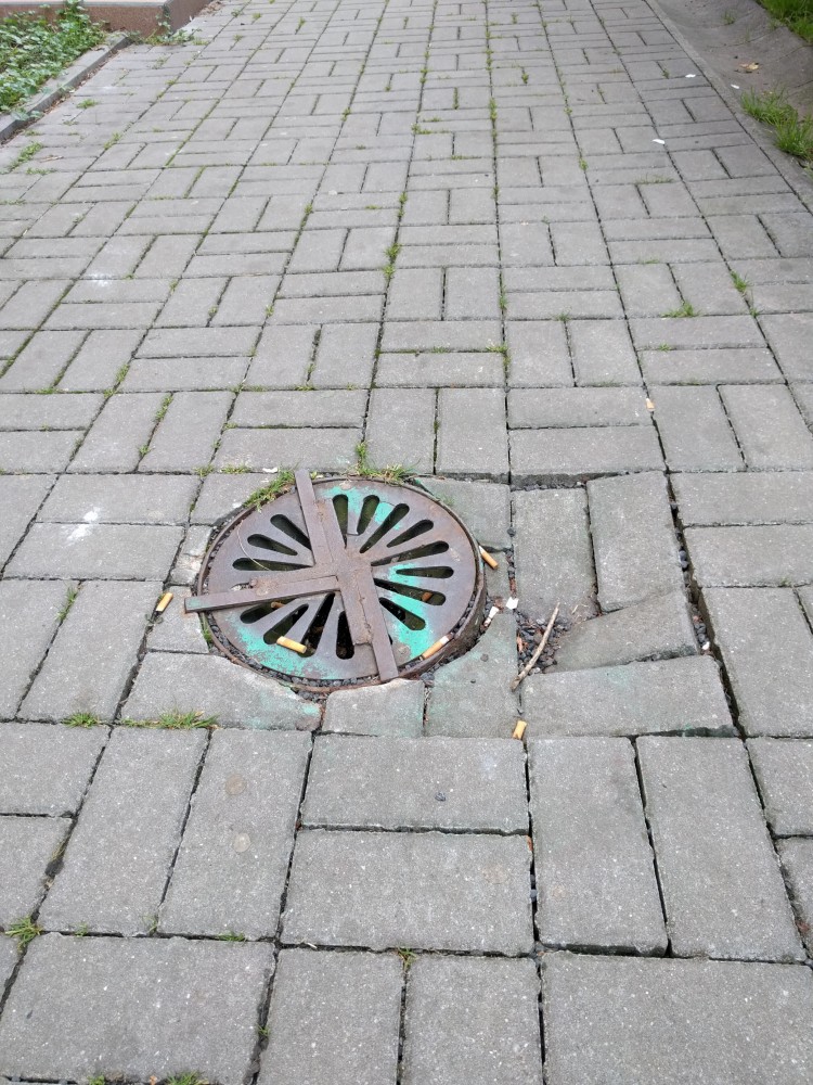 Nebezpecny kanal. Ulomene 4 rameno kanalu. Pri slapnuti na kryt zavreneho kanalu se tento protoci a muze zpusobit pad chodce - osobne overeno :(