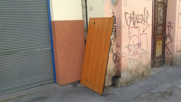 Opřená deska o dům.