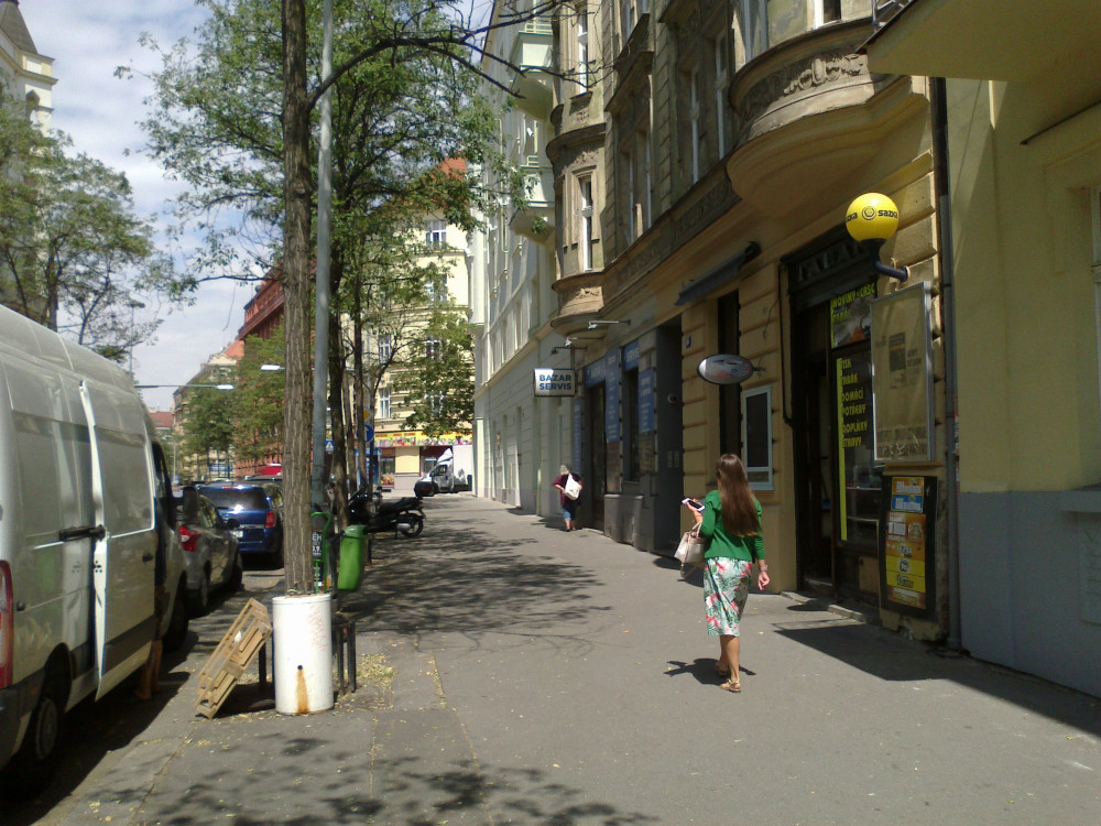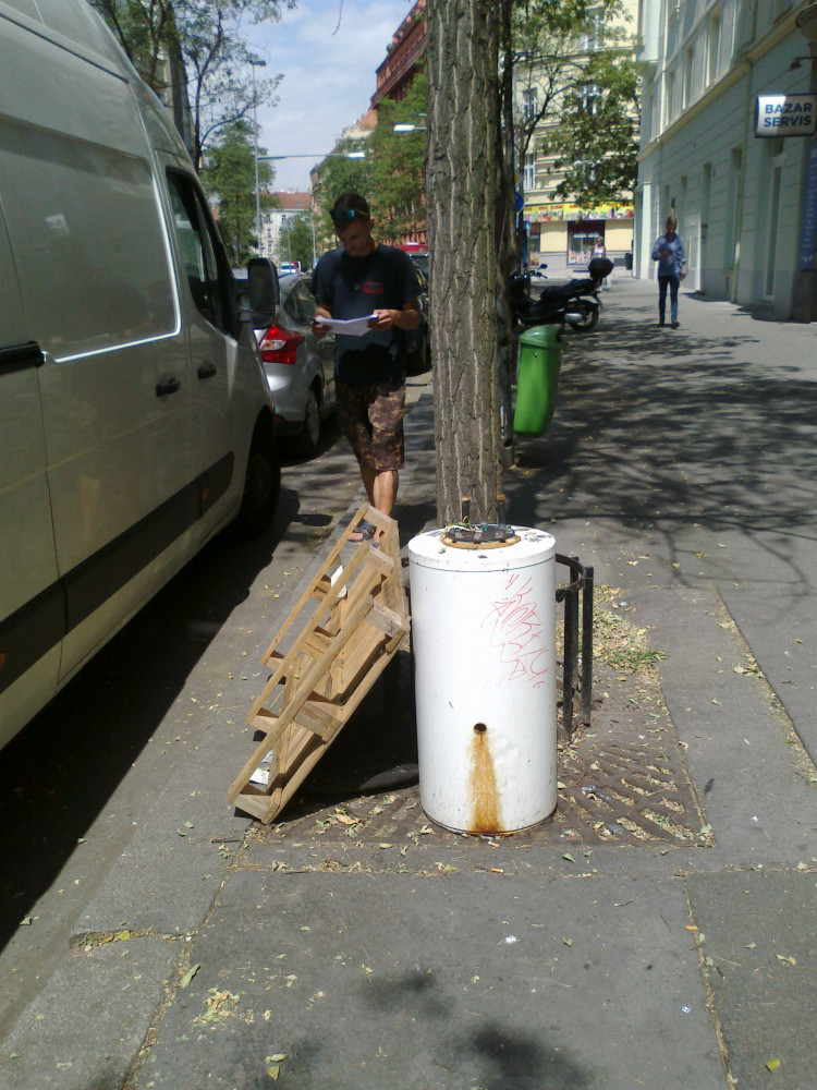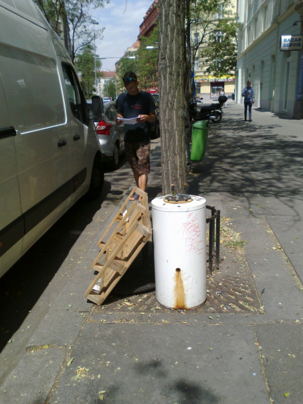 Slavíkova před Tabákem: bojler a europaleta u stromu, již několik dní.