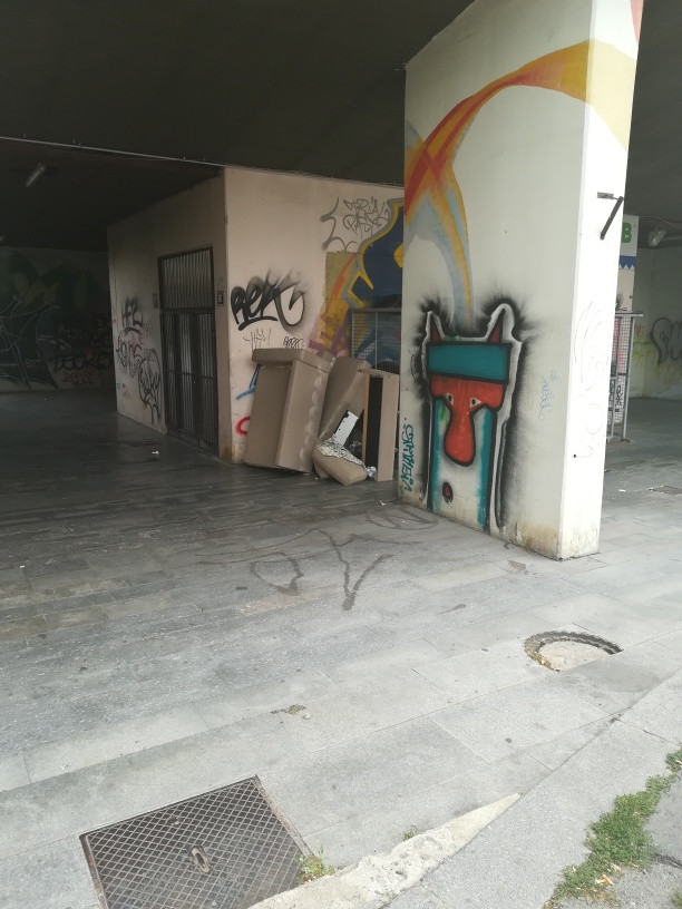 Nepořádek kolem kontejnerů.