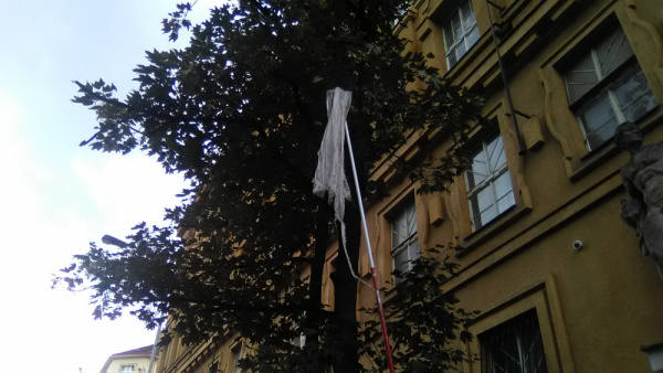 Dobrý den, sáček na stromě jsme se pokusily sundat, nicméně je to výškově nedostupné na místě parkuji auta tudíž nemůžeme s naším autěm zaparkovat pod strom a použít jako plošinu. Podnětu se budeme věnovat následující den děkujeme za pochopení.
