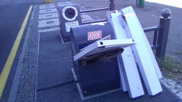 Na náměstí Jířiho z Lobkovic je ucpaný otvor od třídícího kontejnéru na papír. Kontejnér je zabudovaný do chodníku. Děkuji mnohokrát za z provoznění kontejnéru. S pozdravem K. Honsa