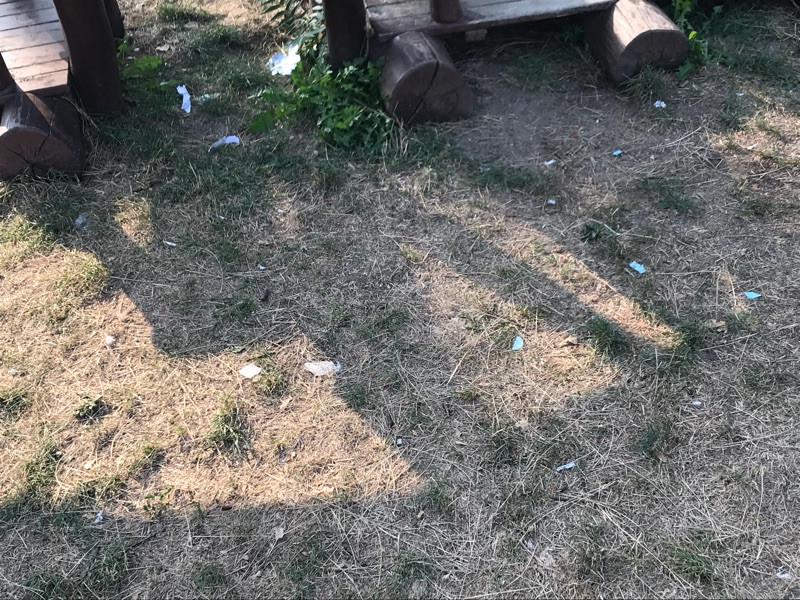 Poničené hřiště, nepořádek