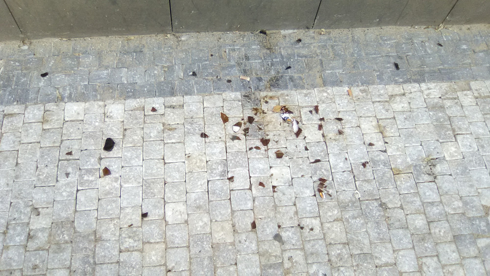Dobrý den, děkujeme za váš podnět na místě jsme byli a nepořádek, střepy i exkrement odklidili. S pozdravem Čistá Trojka