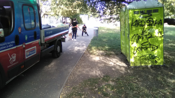 U dětského oploceného hřiště u TOI WC je roztahaný záchodový papír. Snad není použitý od exkrementů. Ale je potřeba projít i okolí, je tam asi někde bobek.
