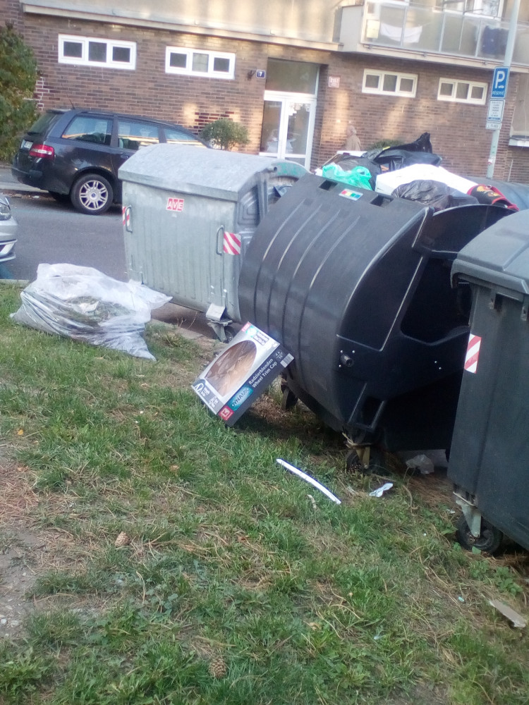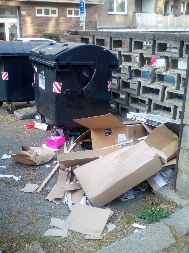 Prosím o úklid nepořádku u kontejnerů. V ulici se někdo stěhoval a takto to dopadlo. Děkuji Čisté Trojce.