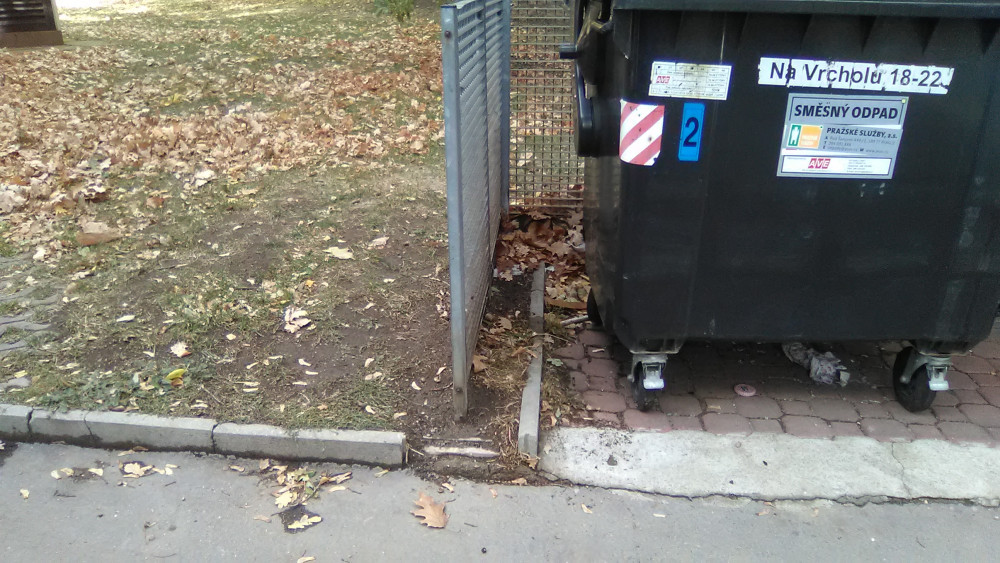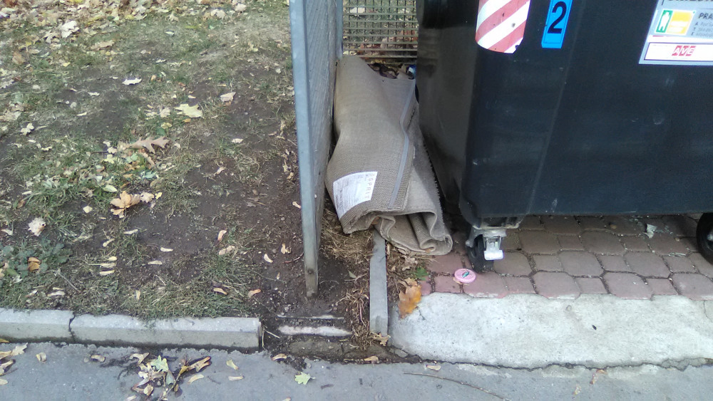 Koberec vedle kontejnerů.