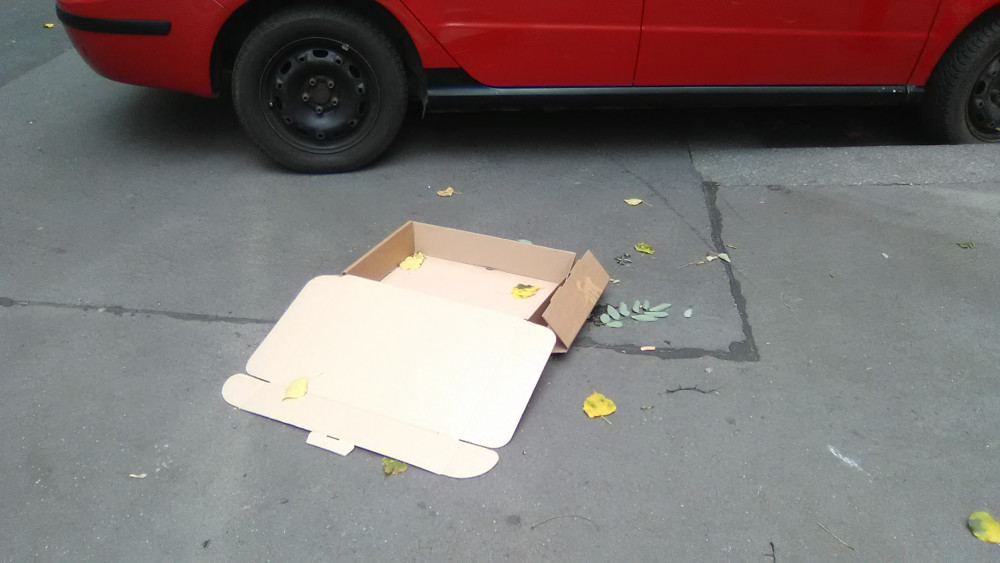 Krabice na chodníku.