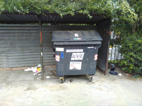 Pravidelná kontrola Čisté Trojky u kontejneru v ulici Jeseniova 131.