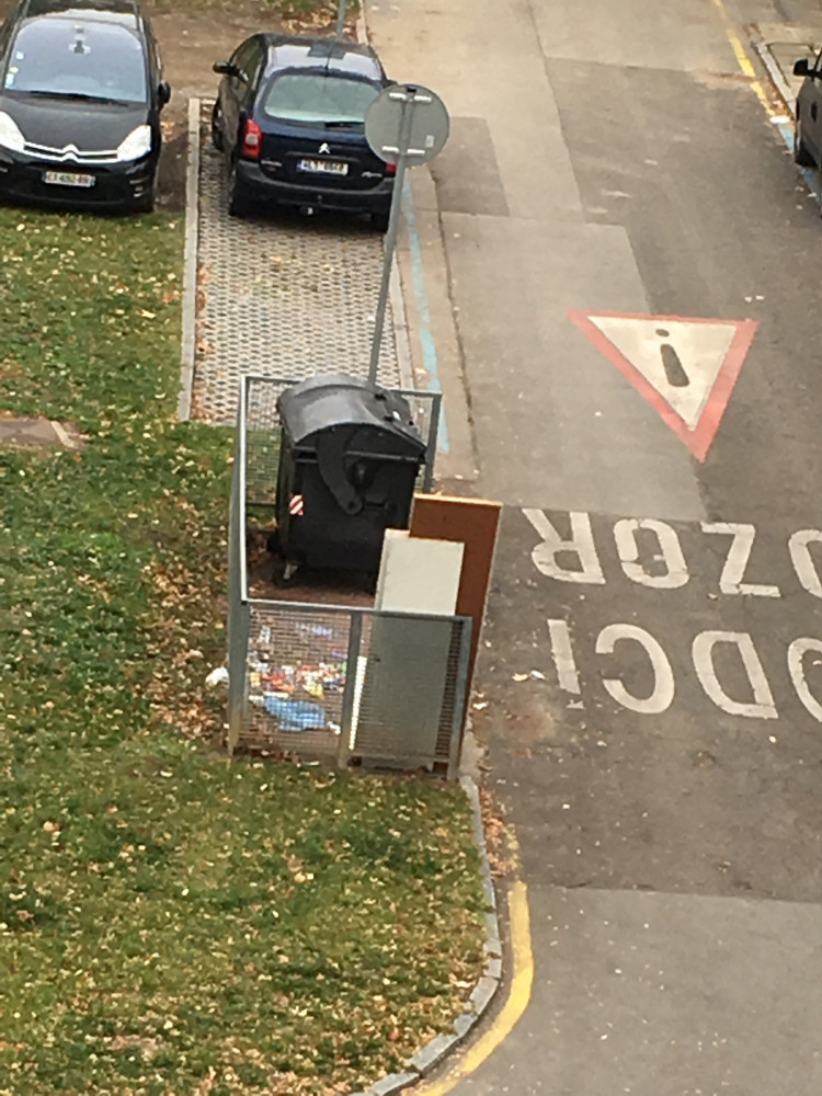Prosím odstranit nepořádek u kontejneru K Chmelnici 3,5,7