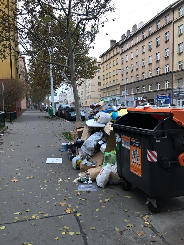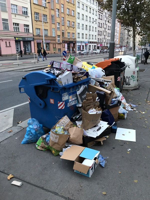 děkujeme za Váš podnět. Místo bylo při kontrole Čistou Trojkou vyvezené. Vývoz má na starost firma AVE.