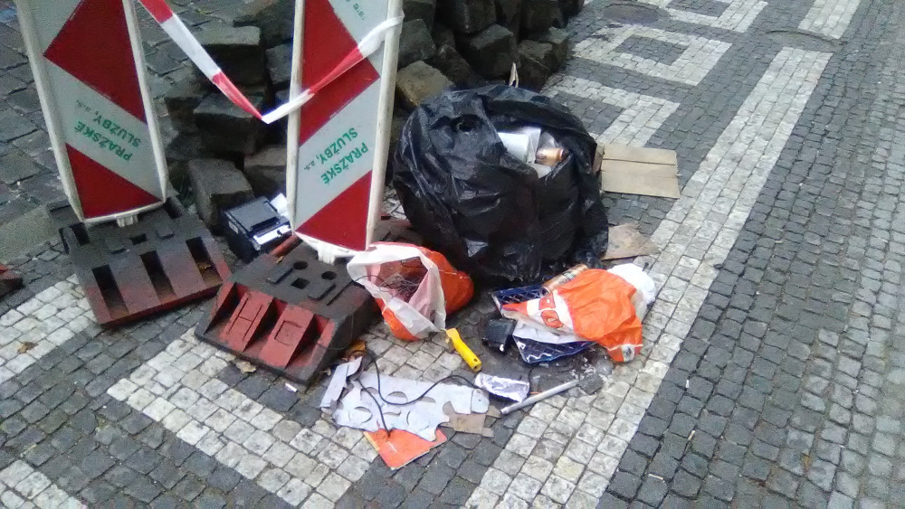 Odpadky na chodníku.