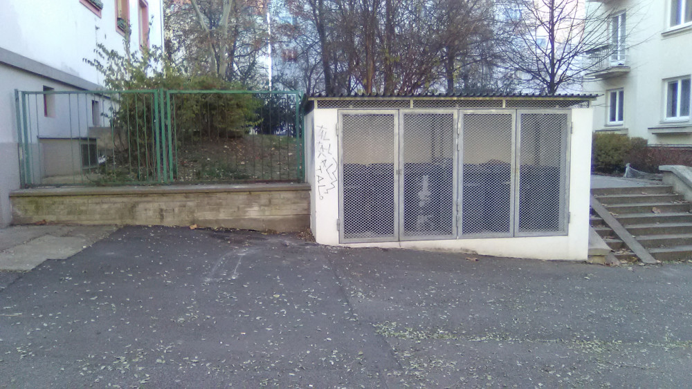 Nepořádek u popelnic v Baranově ulici (17-19).