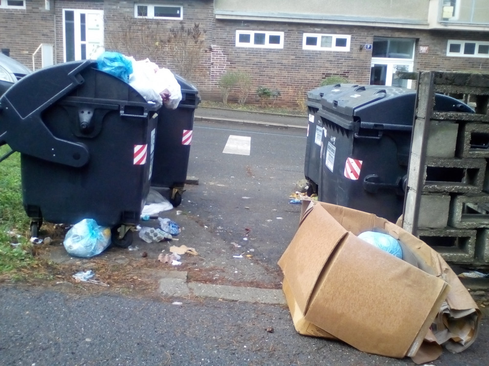 Prosím o úklid u kontejnerů. Předem děkuji Čisté trojce.