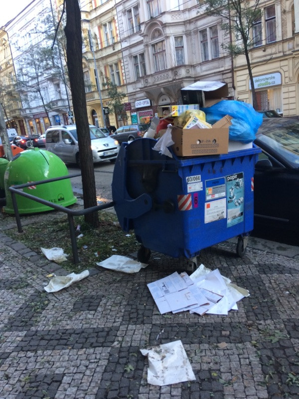 děkujeme za Váš podnět. Svoz a úklid tříděných kontejnerů zajišťuje firma AVE. Tam urgenci předáváme a kontrolu provedeme následující pracovní den.