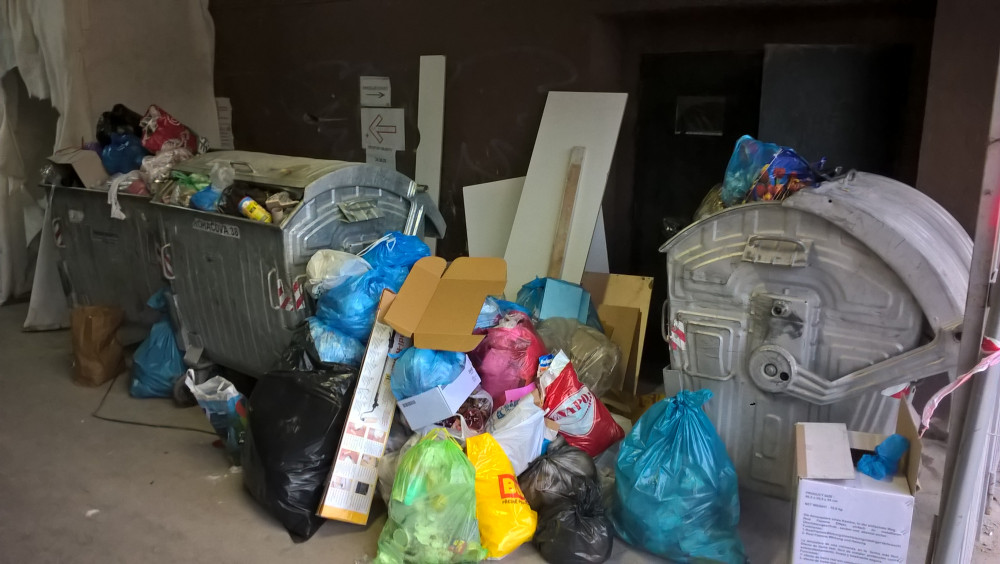 Přeplněné kontejnery a nepořádek okolo