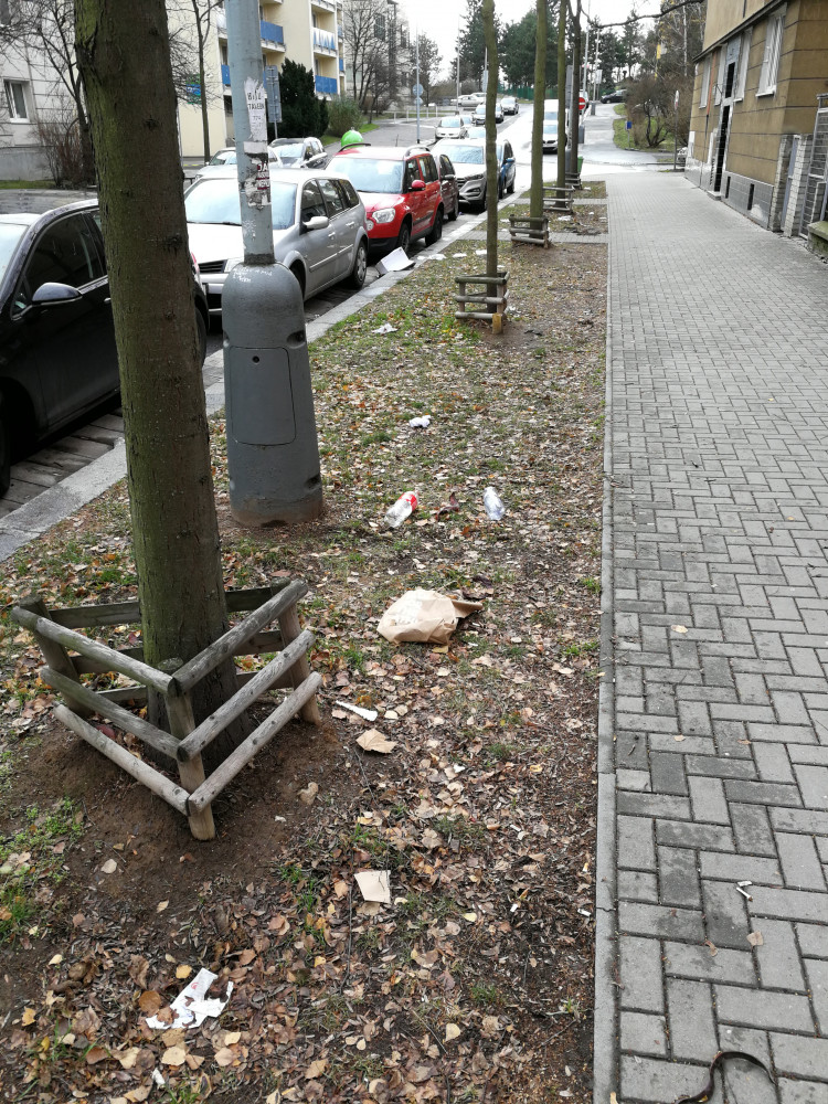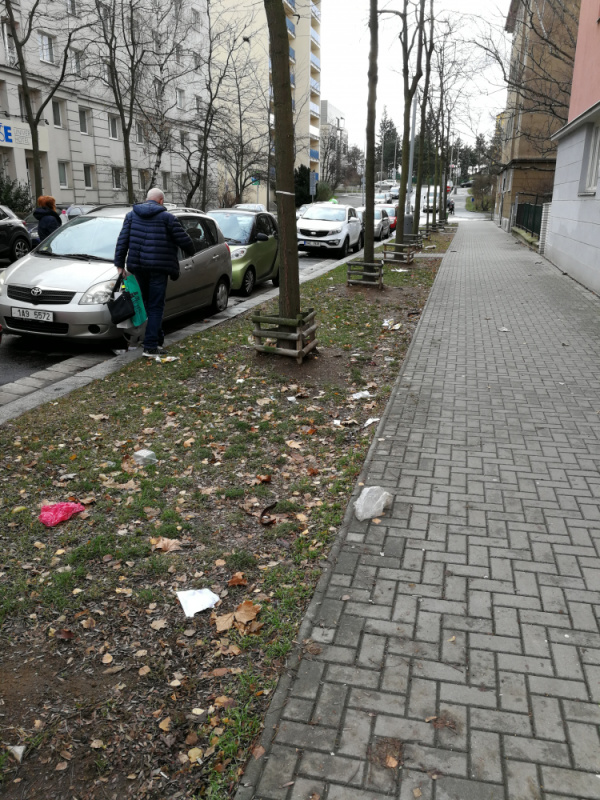 Rozházené odpadky z nedalekých preplnenych kontejnerů. Tradiční záležitost.