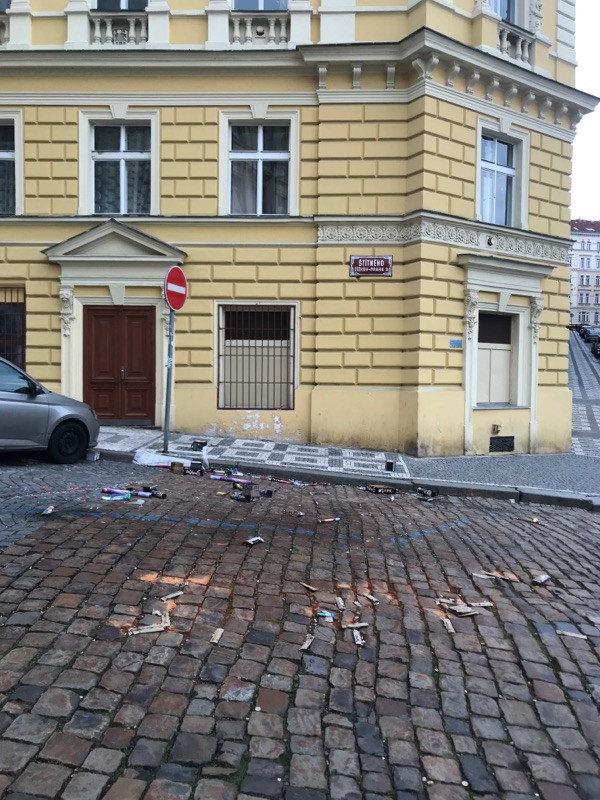 Zbytky rachejtli na ulici
