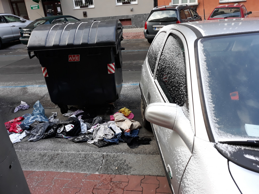 Oblečení u kontejneru