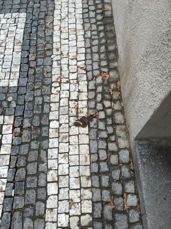 Je tam stále (Křížkovského 10), jen už zaslapane...