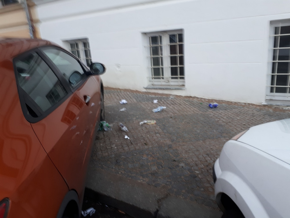 děkujeme za nahlášení. Předáváme na komplexní úklid ulice Pražským službám.