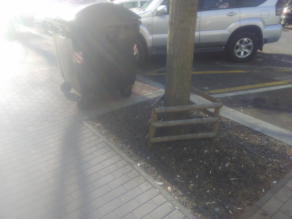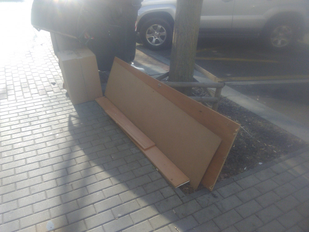 Velká deska pri popelnici.
