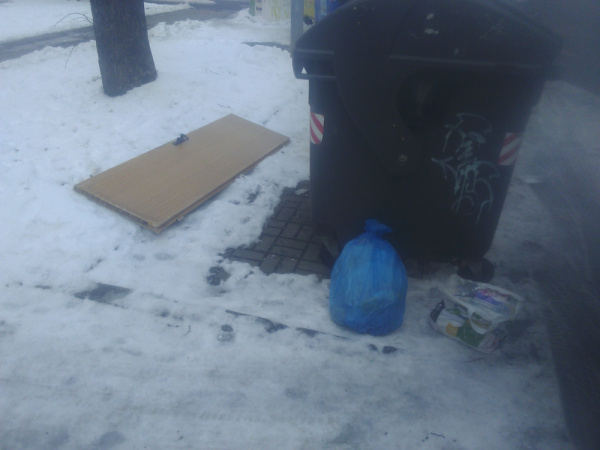 Prosím uklidit u kontejnerů Pod lipami 55.