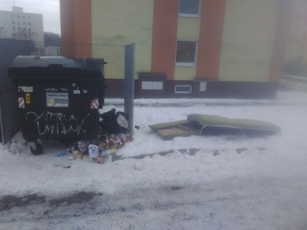 Nepořádek u popelnic.