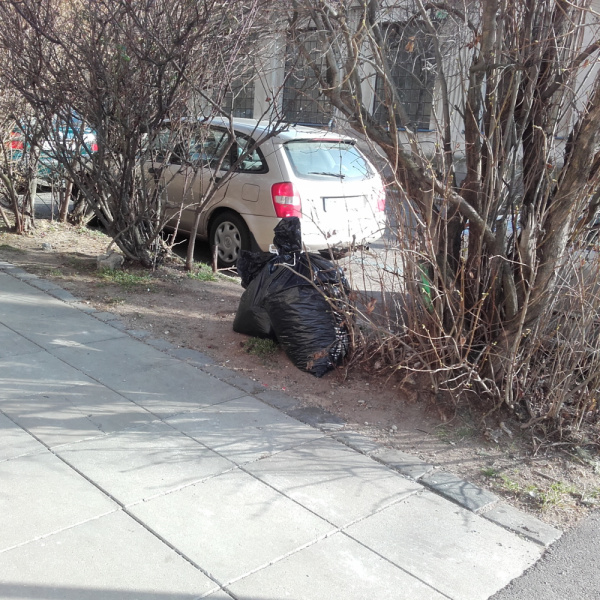 Odpadky odlozene v zeleni. Biskupcova 53.
