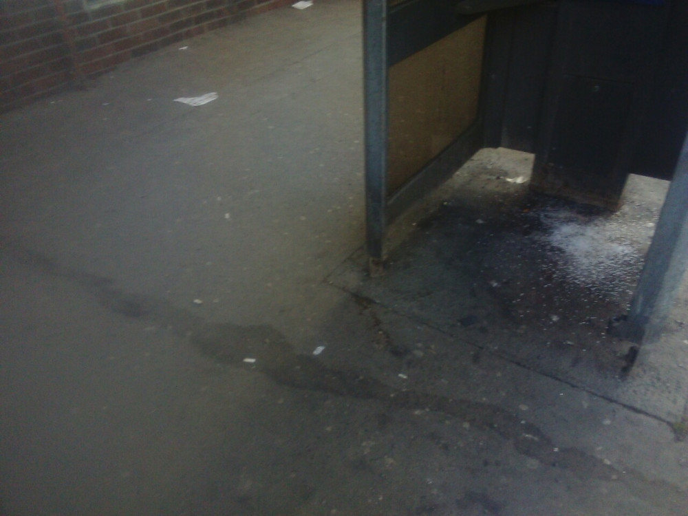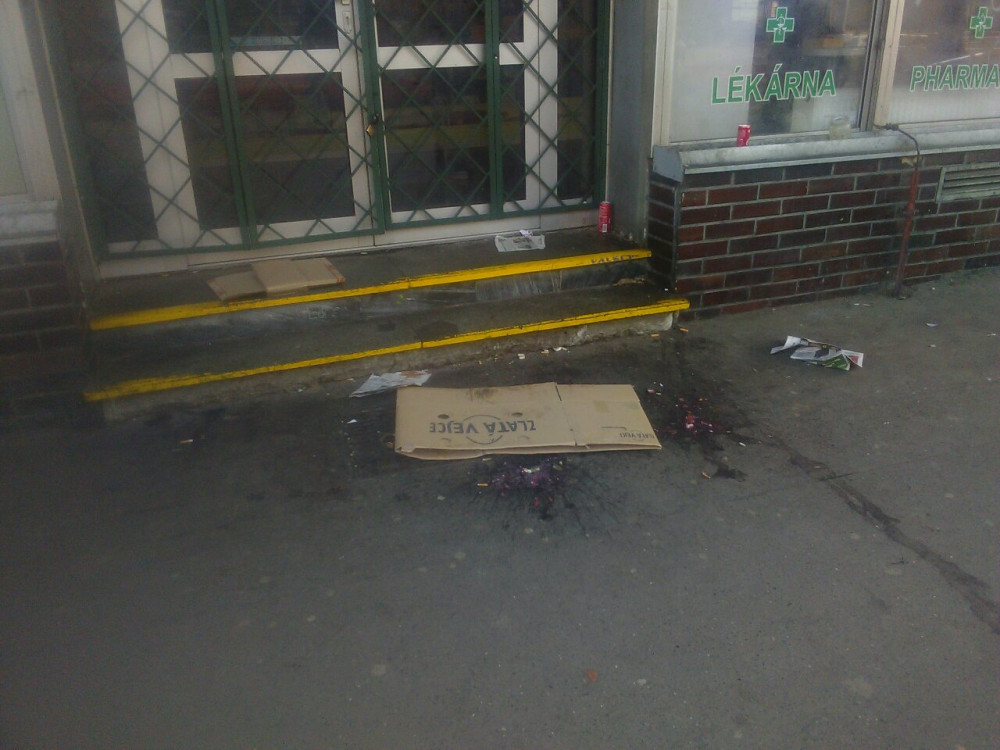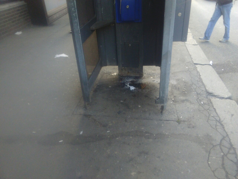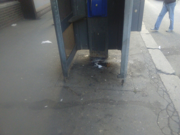 Čištění telefonní budky a okolí od nepřizpůsobivého občana.