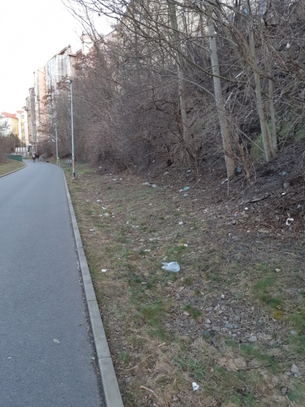 odpadky podel cyklotrasy od Bulhara k premosteni Husitske