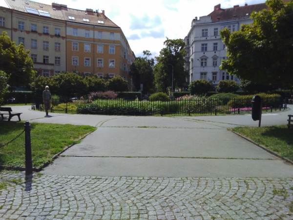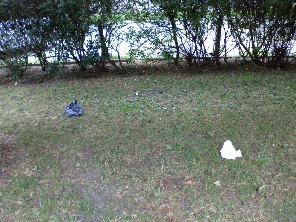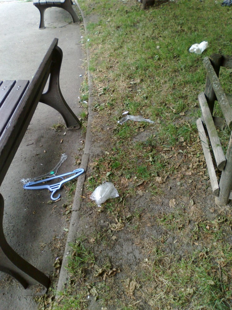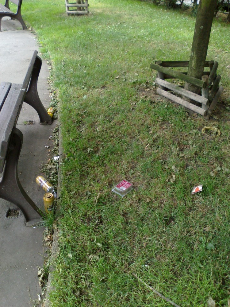Škroupovo nám., vnitřní zelený pruh - mnoho odpadků - viz foto.