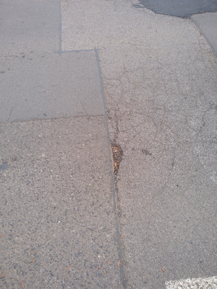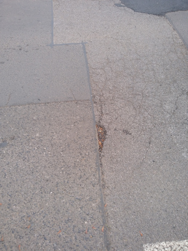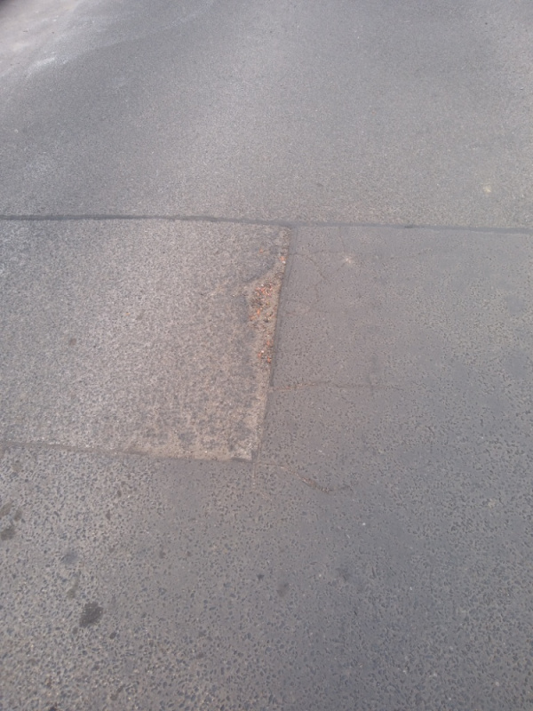 Ulice Fibichova , před domem c. 15 rozbitá vozovka, potřeba dopravit silnici