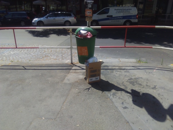 Uklizeno Čistou Trojkou. Koše vysypané. Nepořádek okolo poklizen.