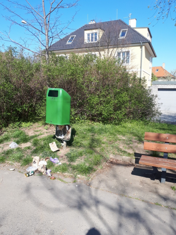 Dobrý den, prosím o výměnu odpadkového koše v parku Židovské péče u grilovacího místa. ul.Jilmová. opakovaně dochází k otevření koše a vysypání jeho obsahu do okolí.