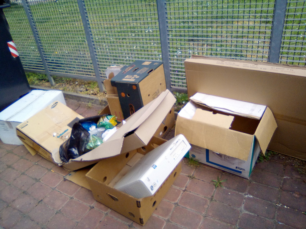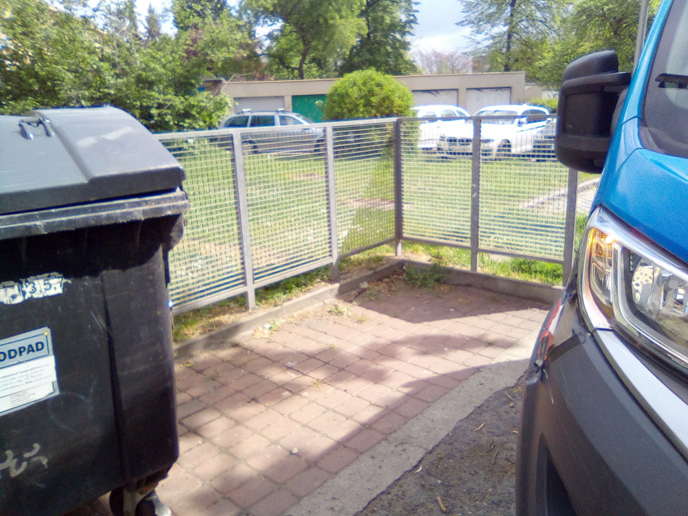 Nepořádek u kontejneru v ulici K chmelnici 5,Praha 3