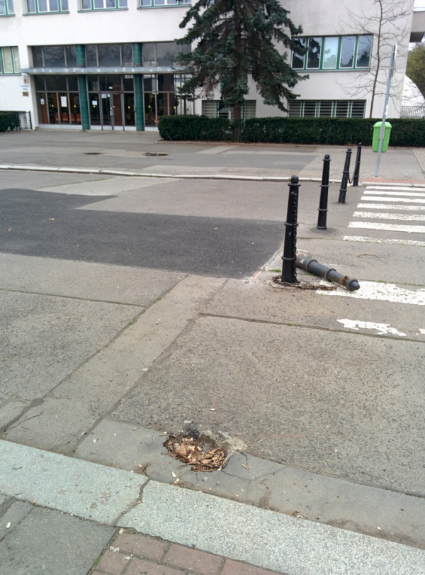Vyvrácený sloupek před základní školou Jiřího z Lobkovic