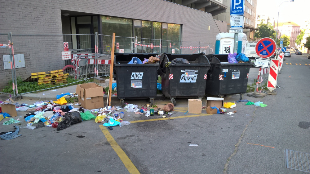Nepořádek kolem popelnic Roháčova 38. Bezdomovci opět řádili :(