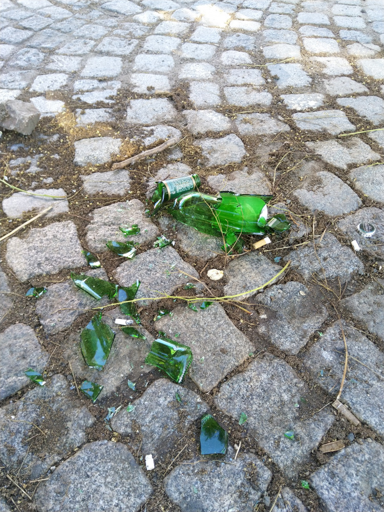 Sklo a opět nepořádek u laviček