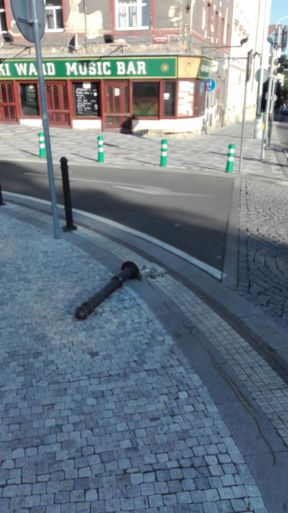 Dobrý den, aktualně došlo v Rokycanově ulici k vyvrácení litinového patníku.