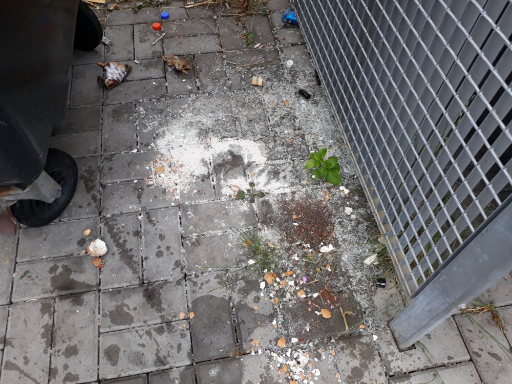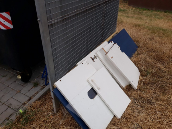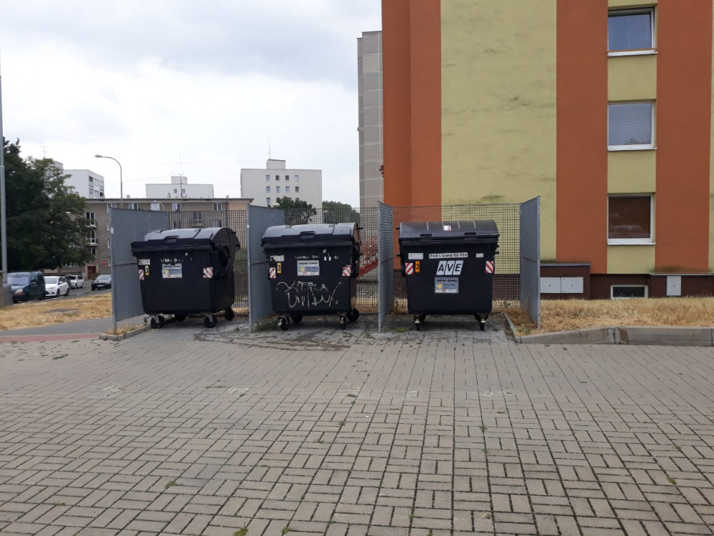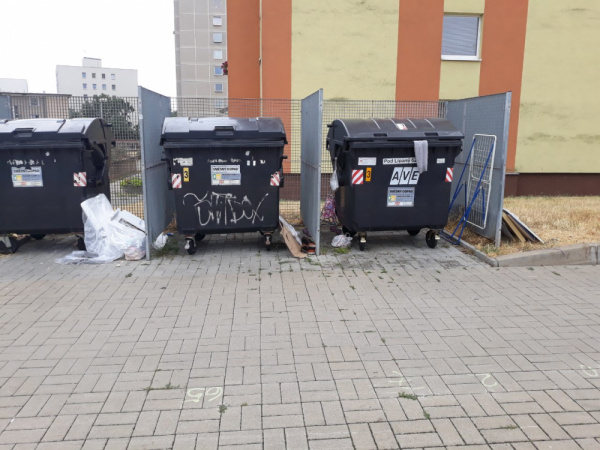 Nepořádek kolem nádob na komunální odpad + černá skládka
