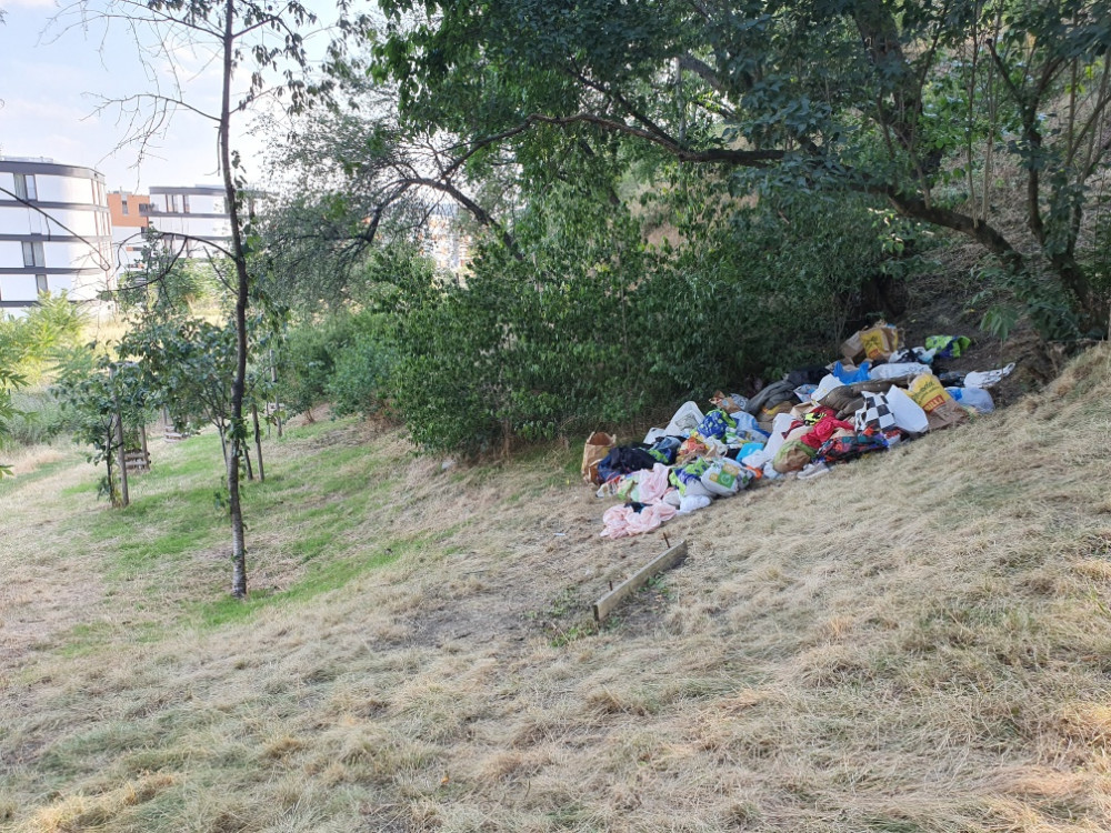 Obleceni a odpad v parku Zidovske pece. U schodu nad ulici Olgy Havlove
