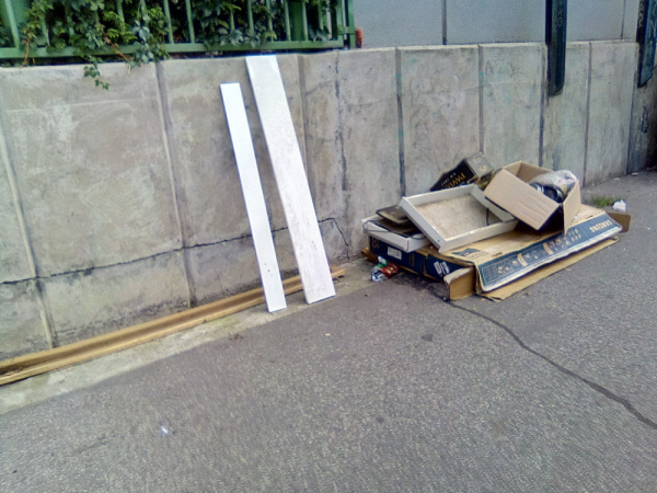 Černá skládka u popelnic - kartony od TV atd.