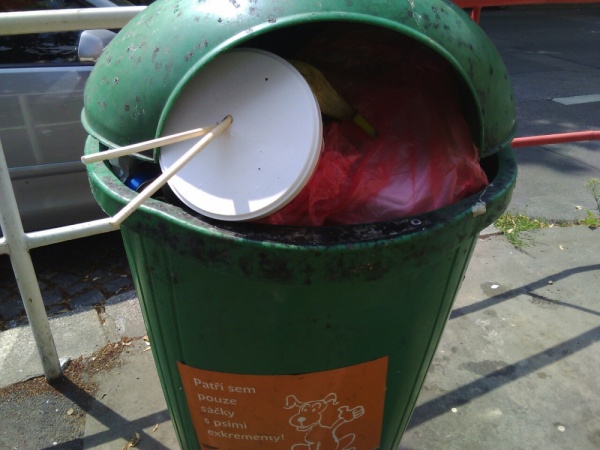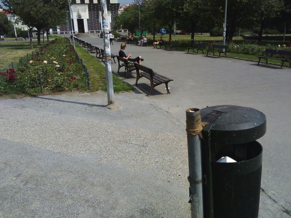 Náměstí dnes celkem čisté, kromě jednoho problematického koše, který jsme vysypali. Čistá Trojka