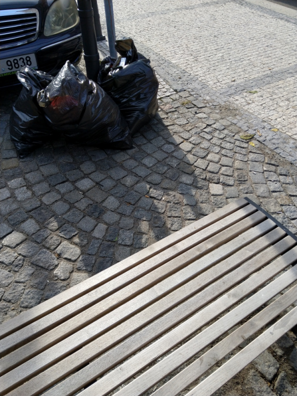 Tento způsob likvidace odpadu zdá se mi poněkud nešťastný. Pytle jsou tu již několik dní.