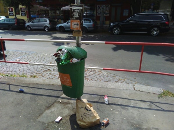 Kromě jednoho koše náměstí celkem v pořádku. Drobné odpadky jsme uklidili. Čistá Trojka