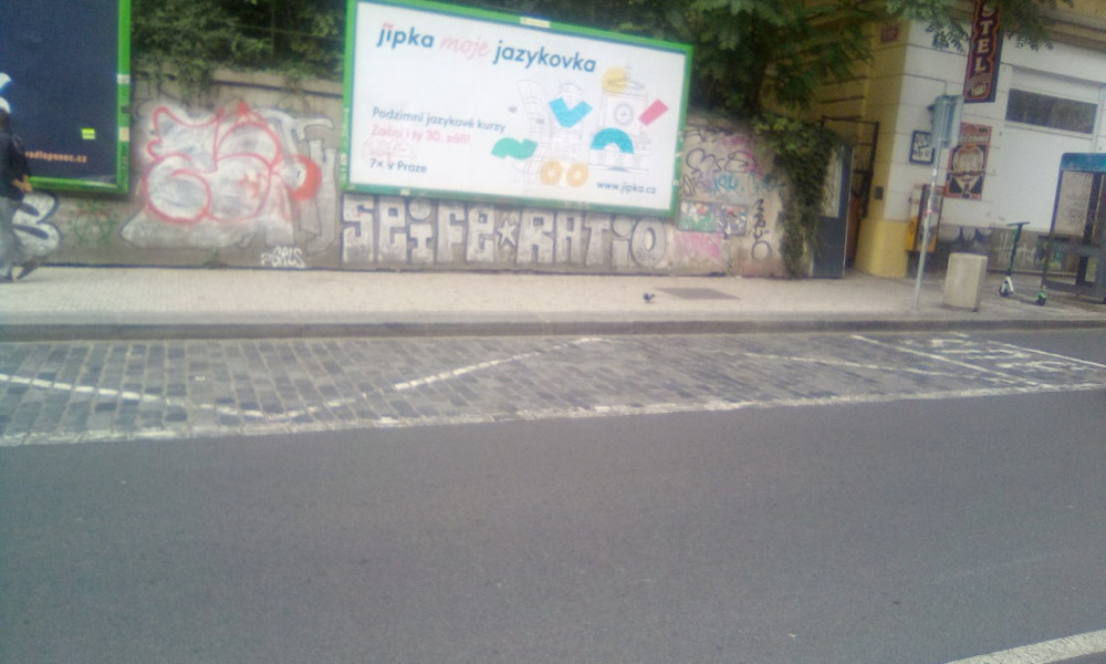 Nepořádek na chodniku mezi hostelem a zastavkou U památníku v Husitské ul.