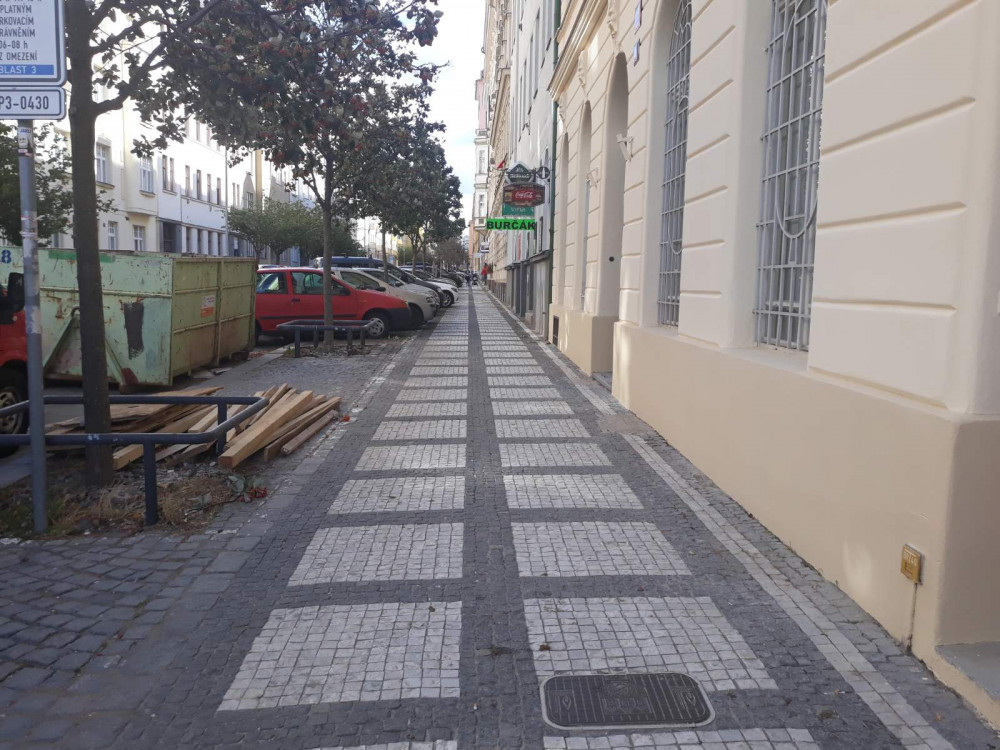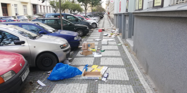 Rozfoukane odpadky v Přemyslovské ulici u Jiřího z Poděbrad
