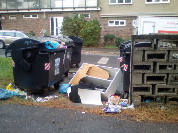 vyhozené staré věci z bytu u kontejnerů. Co k tomu dodat!? Děkuji za úklid Čistá Trojko.